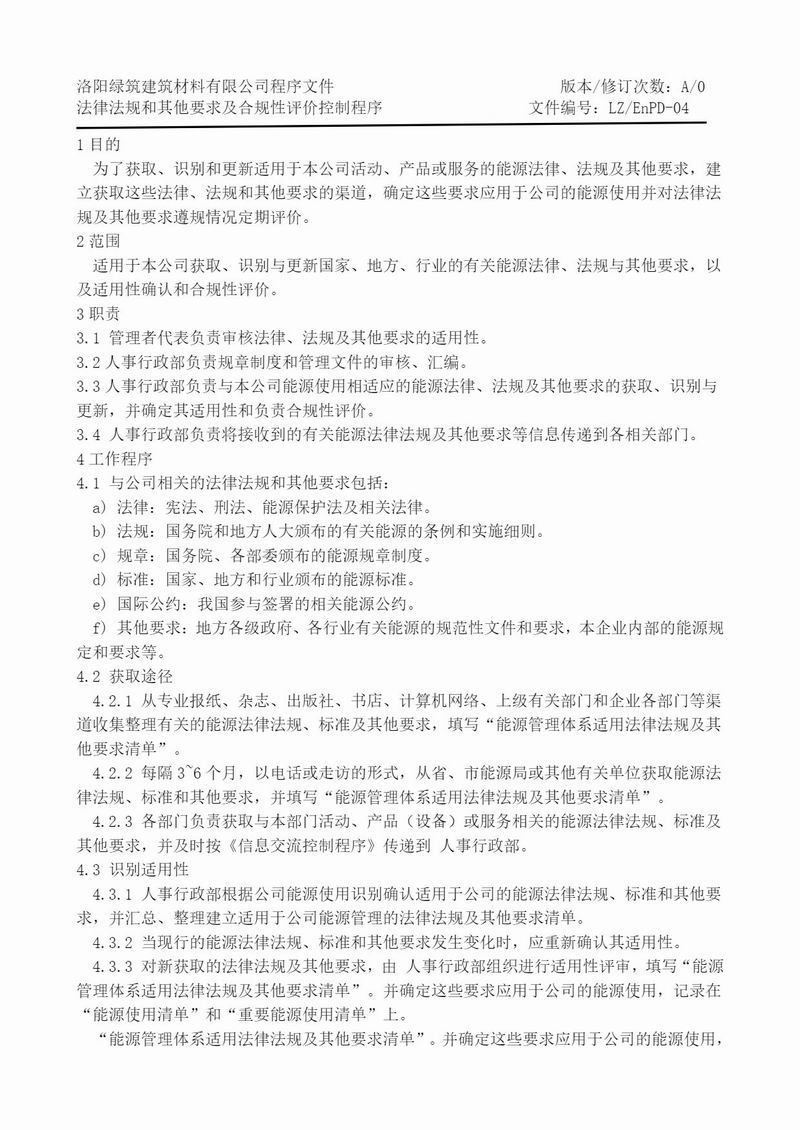 能源管理體系程序文件匯編